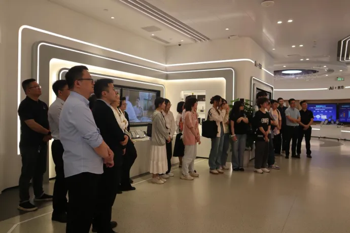 在授课教师郑燕虹、杨安、冉毅、孙雄辉、侯奇焜等带领下,选课学生走进科大讯飞公司中南总部人工智能体验馆,全面了解讯飞在智能语音识别、自然语言理解、机器学习推理、生成式人工智能等前沿领域的研发水平,深度体验讯飞将生成式人工智能技术运用于教育、消费、医疗、政法等行业、场景的落地情况,并重点观看了讯飞技术人员以“潇湘八景”中的“山市晴岚”为例,基于讯飞星火V3.5在线上构建历史人文和山水古迹元宇宙场景、开发互动式课程的概念设计。