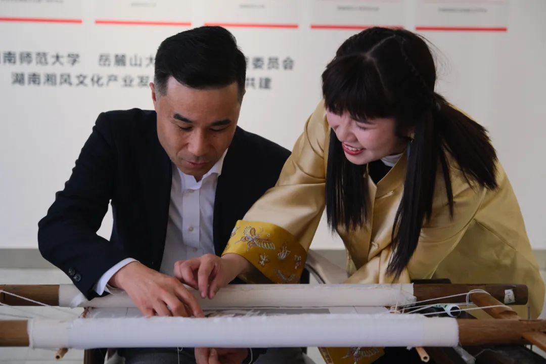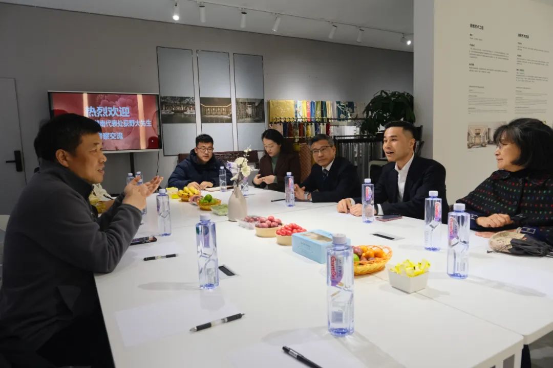 活动中,荻野大先生一行实地考察了我校国家“非遗”湘绣文创基地,陈小法教授、冉毅教授、孙舜尧教授等分别介绍了我校日语专业建设发展、与日本学者开展教学科研合作以及湘绣文化传承创新与对外传播、潇湘八景数字艺术展筹建等情况,希望以此为契机进一步促进两国两地相关高校科研院所相关专业在人才培育、文化创意等方面的合作交流。