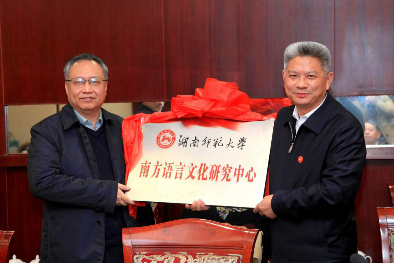 欧阳峣代表学校为南方语言文化研究中心授牌。