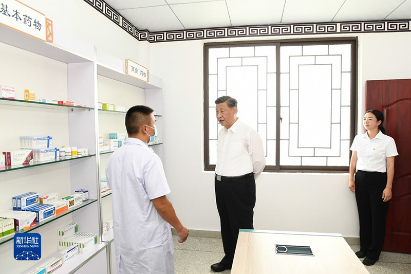 6月8日,中共中央总书记、国家主席、中央军委主席习近平在四川考察。这是8日上午,习近平在眉山市东坡区太和镇永丰村卫生站考察。(新华社记者 谢环驰/摄)