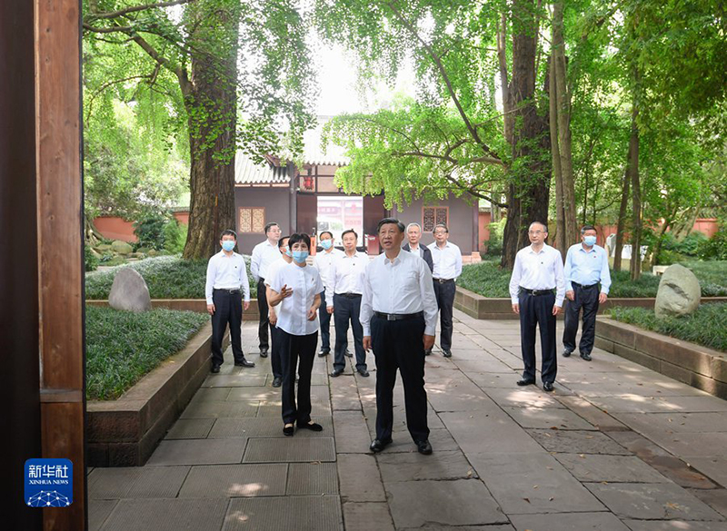 6月8日,中共中央总书记、国家主席、中央军委主席习近平在四川考察。这是8日上午,习近平在眉山市三苏祠考察。(新华社记者 李学仁/摄)