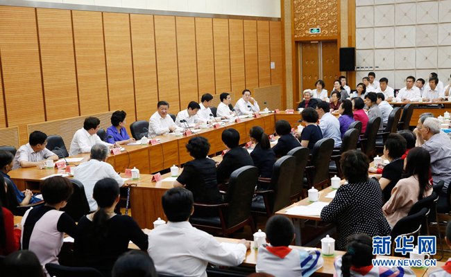 随后,习近平同教师学生代表座谈。八一学校校长沈军、八一学校教师张亚红、首都经贸大学教授纪韶、八一学校学生牟迪铃和方亦昕先后发言,他们谈教育管理、谈教书育人、谈理想追求、谈学习生活,习近平不时插话交流,现场气氛活跃。