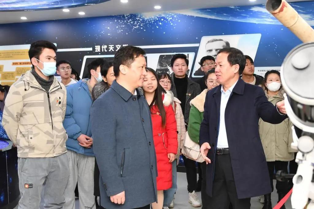 李志超一行参观了我校世界一流建设学科展厅,在天文馆参加了“团团陪你看星空”主题活动。活动中,他仔细听取了共青团员代表的学习生活情况,并代表共青团湖南省委送去了慰问金和新年的问候。他充分肯定了我校在学校发展和共青团工作上取得的成绩,希望学校能为建设社会主义现代化新湖南培养更多可担重任的青年人才。他勉励同学们要牢记习近平总书记的嘱托,坚定理想信念,练就过硬本领,为湖南的发展贡献青春力量。