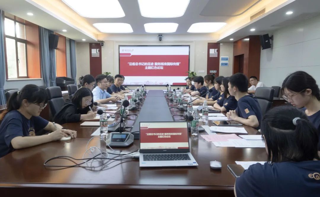 “沉下心学习、俯下身做事、扎下根调研,练就过硬过强本领,投身民族伟大复兴大业。”启动仪式上,实践团团长、外国语学院研究生胡云天介绍了团队的具体调研安排。在为期一周的实践调研中,考察团成员将追随近年来习近平总书记在湘视察足迹,开展“习党史、溯初心”“研国情、谋振兴”“兴文化、展形象”等主题专项调研,以青年学子的身份与视角为讲好中国故事、助力国际传播建言献策。期间举行的红色论坛上,外国语学院学生李姝洁、邓佳佳,世承书院学生丁兰若等分别围绕党史教育、乡村振兴、文化传承等主题的精准国际传播分享观点并提出各自支队的选题方案与调研计划。