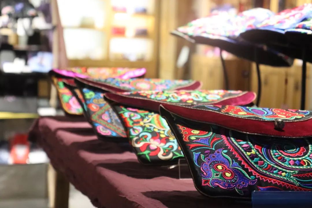 矮寨大桥是承载"天堑变通途"的现实基础,更是中国脱贫攻坚、乡村振兴经验模式走向国际舞台的坦途大道。调研队一行穿越通往矮寨大桥的栈道,参观依桥而生的非遗文创店。从别出心裁的祈福小鼓到明艳瑰丽的苗绣纹理,调研队成员们于一针一线窥知生生不息的文化内力,领略文化传承与传播的过去、现在和未来。